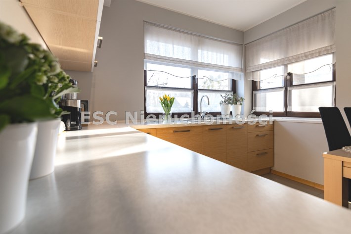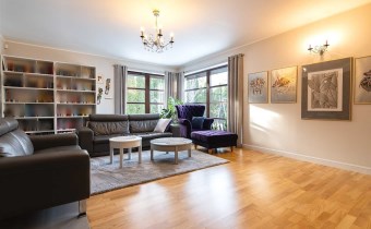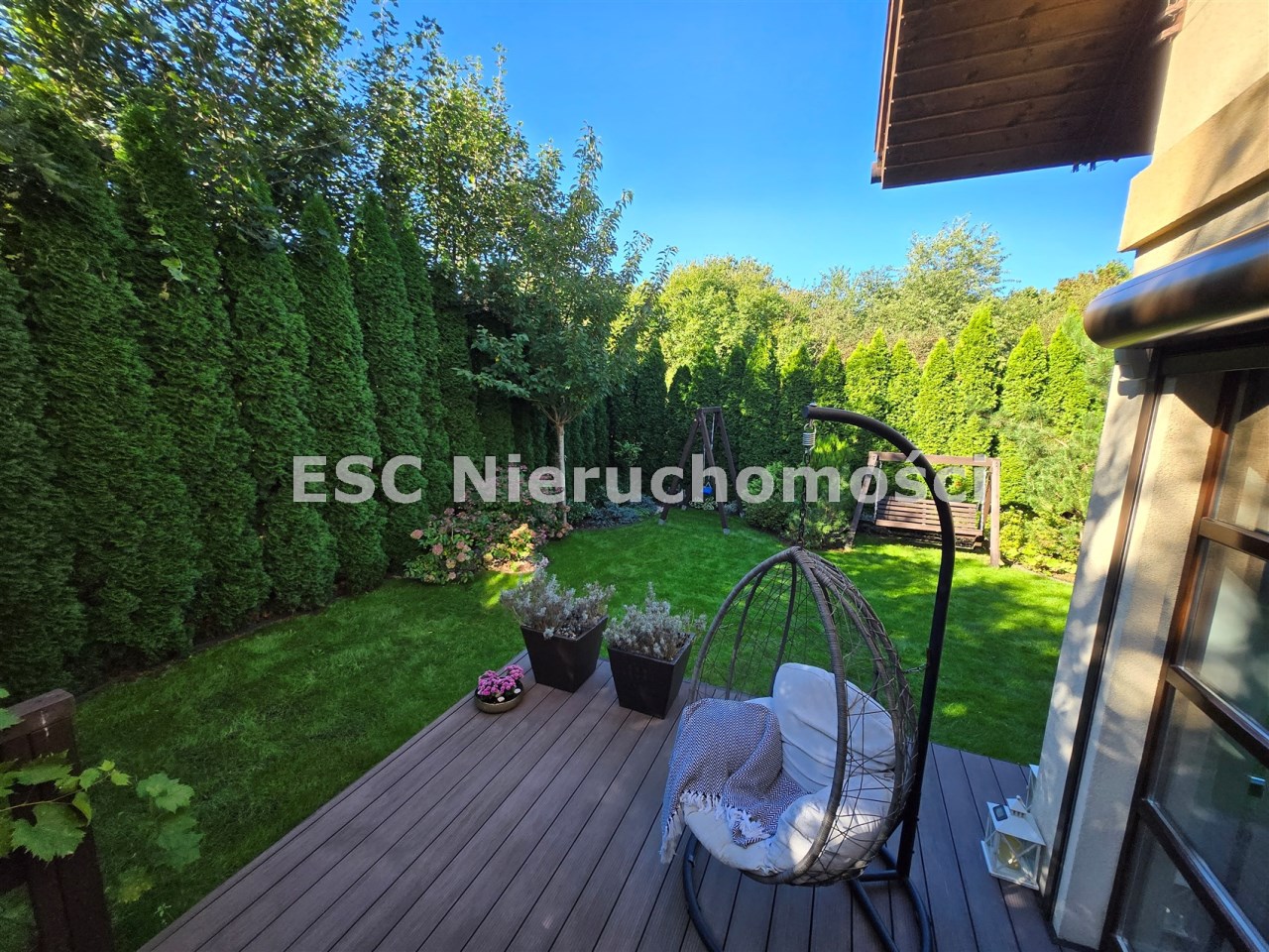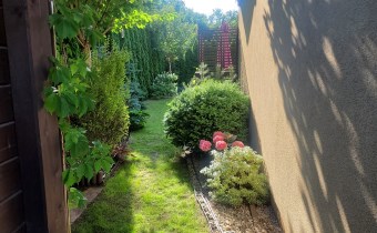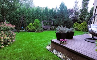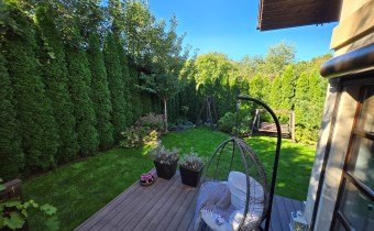 Starannie urządzony ogród stanowi idealne miejsce do wypoczynku i spędzania czasu na świeżym powietrzu. Taras z deski kompozytowej oraz wieloletnia roślinność zapewniają pełną prywatność. Do dyspozycji właścicieli pozostają dwa garaże z automatyczną bramą na pilota oraz miejsca postojowe przed budynkiem.
