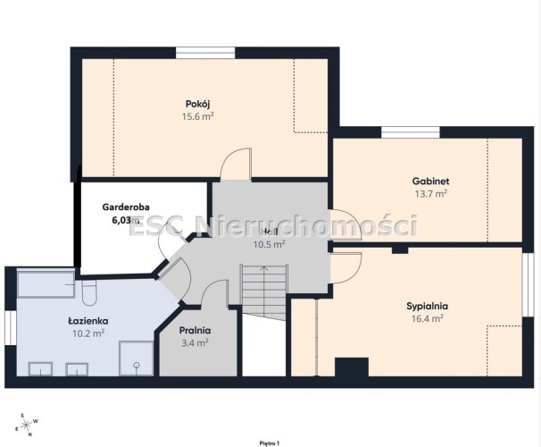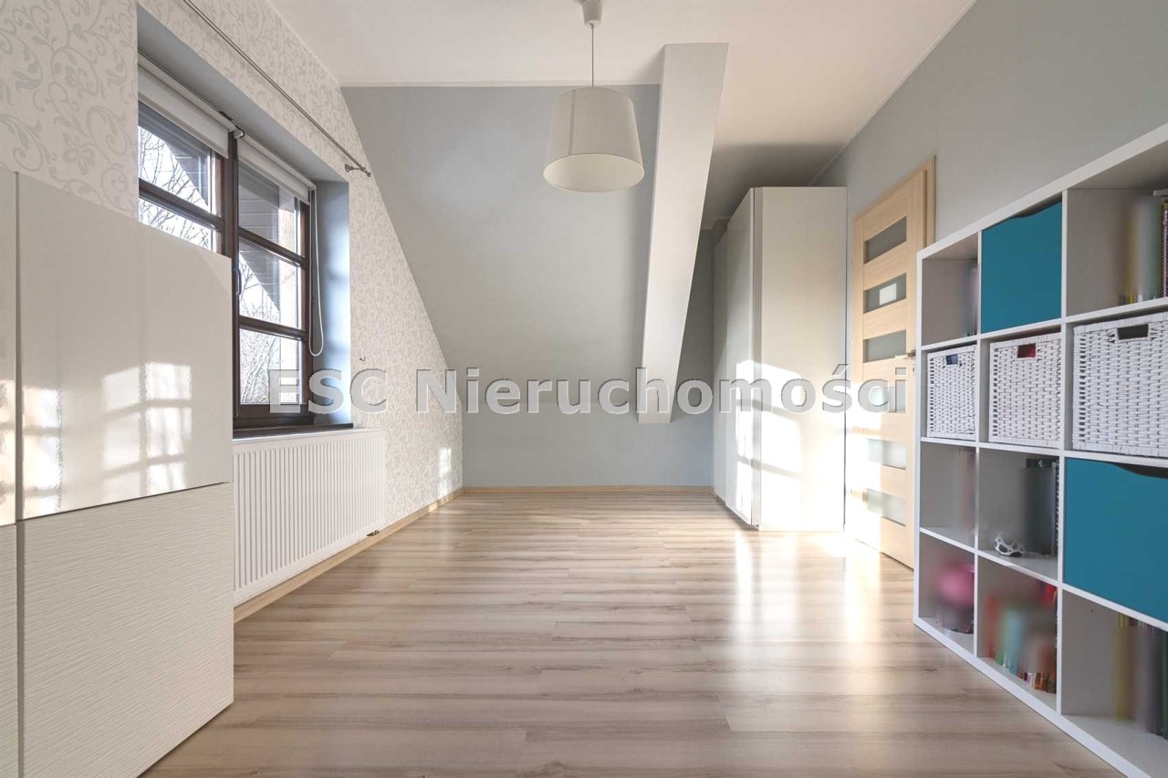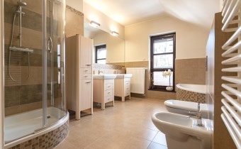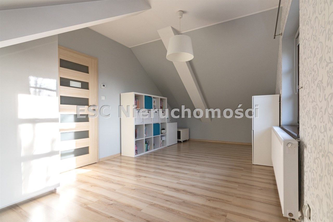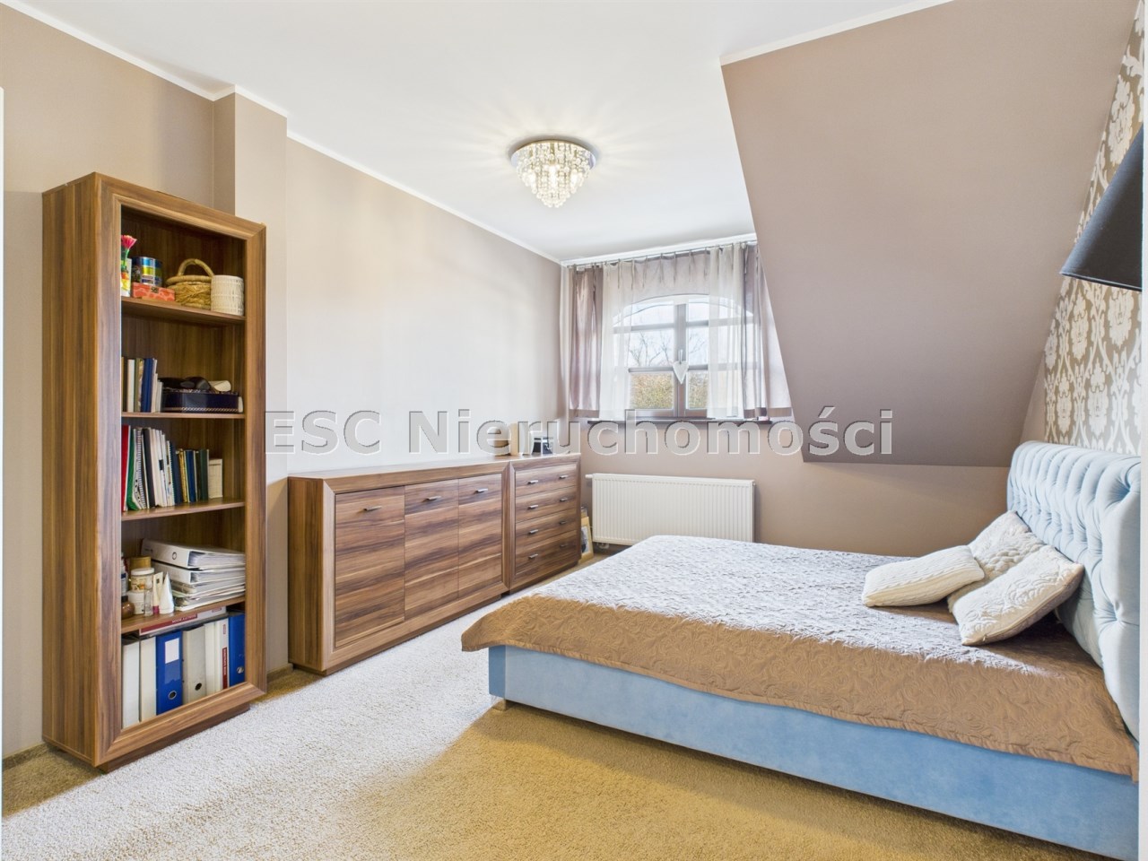 Piętro domu stanowi komfortową strefę prywatną. Znajdują się tu trzy pokoje, w tym sypialnia główna z pojemną 3- drzwiową szafą, gabinet oraz pokój dziecięcy. Pokoje na piętrze bardzo jasne z południową i zachodnią wystawą okien co zapewnia naturalne doświetlenie wnętrz. Do dyspozycji domowników jest przestronna łazienka z oknem, wyposażona zarówno w wannę, jak i prysznic, 2 umywalki, WC oraz bidet. Dodatkowo na piętrze znajduje się osobna garderoba oraz pralnia połączona z kotłownią.