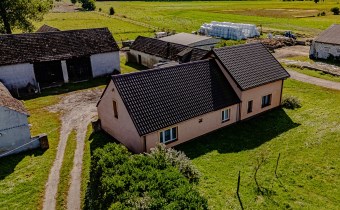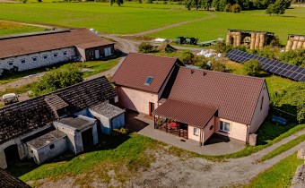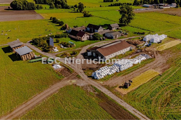 To kompletna nieruchomość – dom mieszkalny, nowa obora, magazyny, garaże, wiaty oraz baza paszowa.