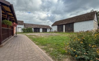 • Ciąg budynków gospodarczych (260 m²) – kotłownia, magazyn zboża, mieszalnia, śrutownik, garaż, kurnik, piwnica