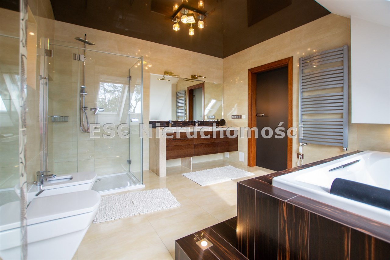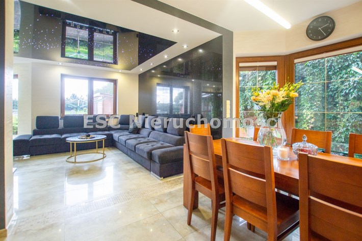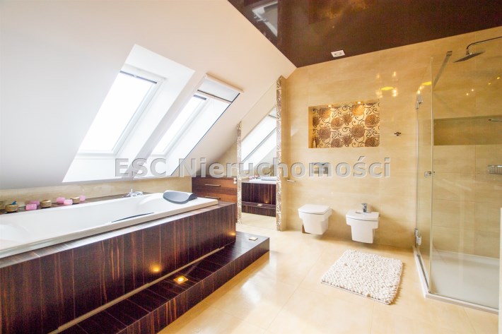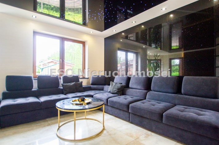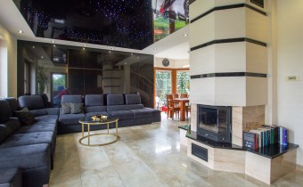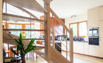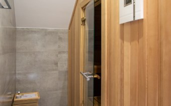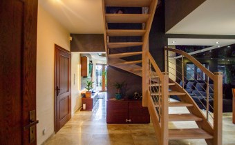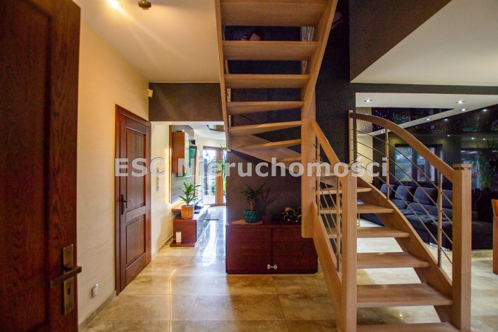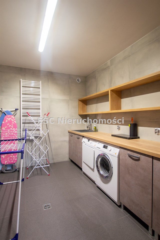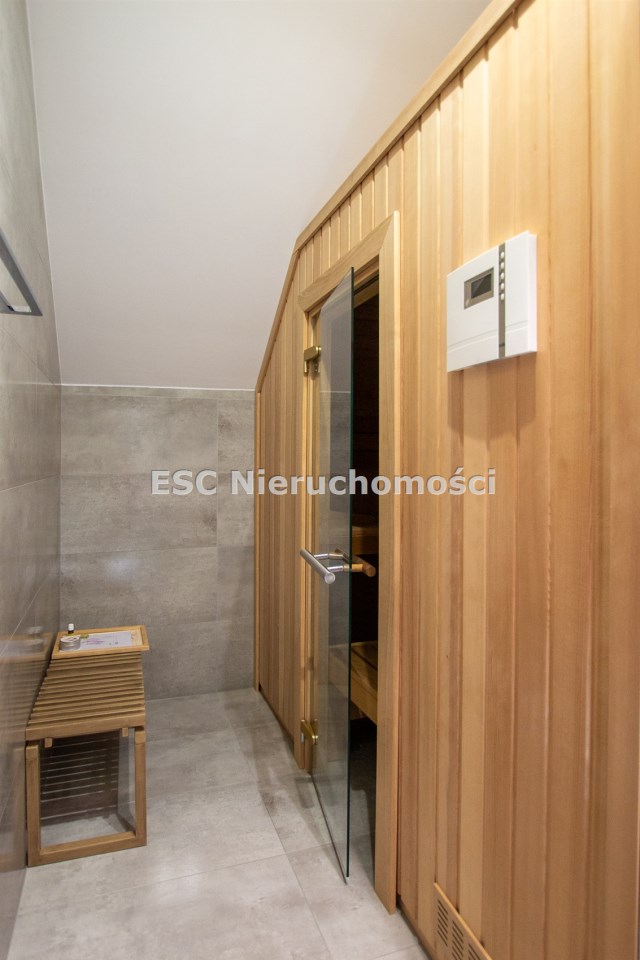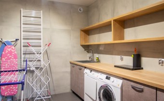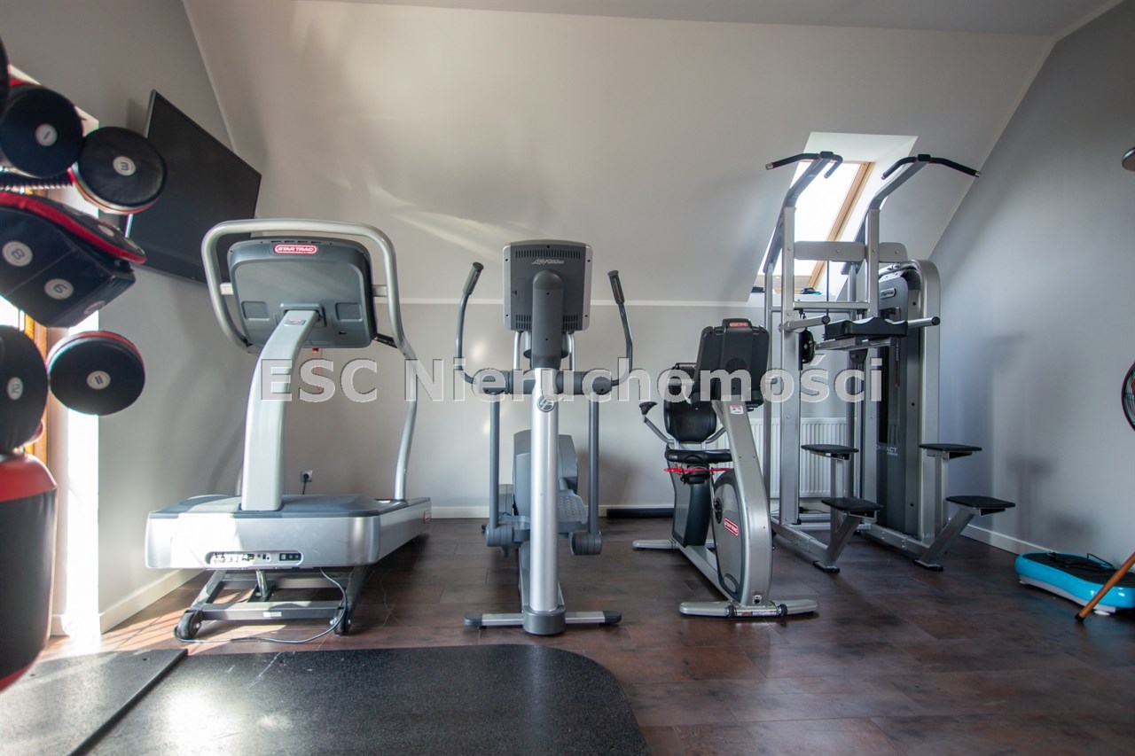 2 i pralnia, a schodami na górę wchodzimy do części rekreacyjnej z siłownią i sauną fińską oraz dodatkową łazienką.