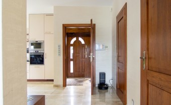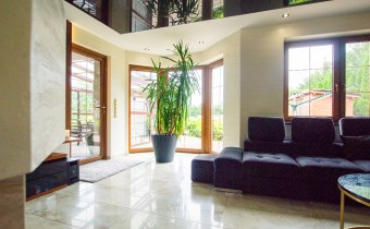 We wszystkich oknach rolety antywłamaniowe, bramy wjazdowe i garażowe sterowane elektrycznie, dodatkowo pilotami.