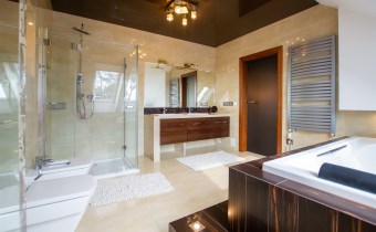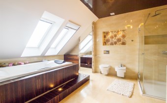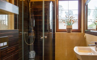 W łazience dodatkowo ogrzewanie podłogowe elektryczne i grzejnik drabinka z grzałką elektryczną.