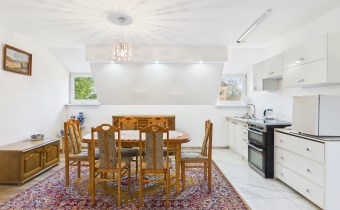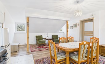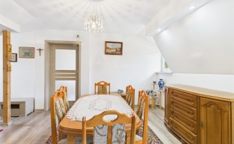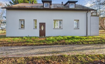 Przedmiotem oferty jest działka o pow. 411 m2 zabudowana domem o funkcji mieszkalno - usługowej, wolnostojącym dwukondygnacyjnym o pow. całkowitej ok. 139 m2, pow. użytkowej ok. 128 m2. Dom wybudowany metodą tradycyjną, murowany z cegły, ocieplony styropianem. Dach konstrukcji drewnianej kryty blachodachówką . Wymienione poszycie dachu rynny, stolarka okienna 2 lata temu. Na podłodze panele w aneksie kuchennym i łazience terakota. Wymieniona instalacja elektryczna i wodno-kanalizacyjna . Dom ogrzewany grzejnikami elektrycznymi. Do tej pory służył właścicielom wyłącznie dla zaspokojenia potrzeb rekreacyjnych.