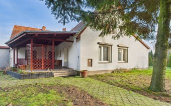 Dom jednorodzinny parterowy z poddaszem nieużytkowym i osobnym murowanym garażem.