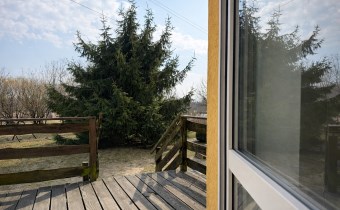• drewniany taras z zejściem do ogrodu