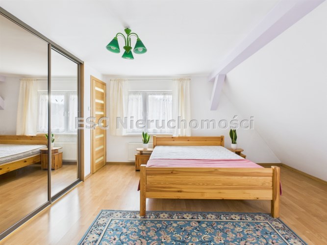 Ogromnym atutem jest duży, zielony ogród z licznymi nasadzeniami – znajdziesz tu zarówno ozdobne krzewy i drzewa, jak i miejsce na warzywnik, rabaty czy strefę wypoczynkową. To idealna przestrzeń do życia na świeżym powietrzu, relaksu i spotkań z bliskimi.