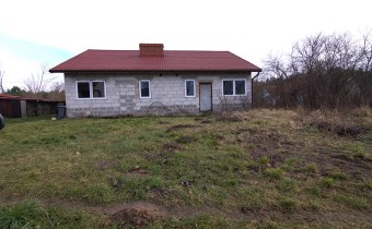 Drugi z domów zlokalizowany na przedmiotowej działce zaprojektowany jako nieruchomość mieszkalno - usługowa wybudowany do stanu surowego. Dach pokryty blachodachówką, wewnątrz - część ścianek działowych oraz część okien.