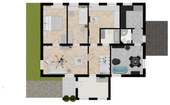 Zgodnie z projektem układ pomieszczeń kształtuje się w następująco: