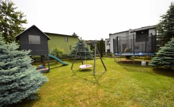 Dom został zaprojektowany jako dwa odrębne mieszkania, które łączy wewnętrzna klatka schodowa – idealne rozwiązanie dla rodzin wielopokoleniowych lub osób szukających nieruchomości z możliwością najmu części domu.