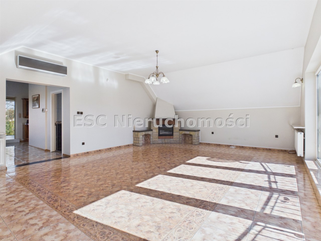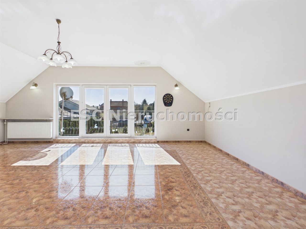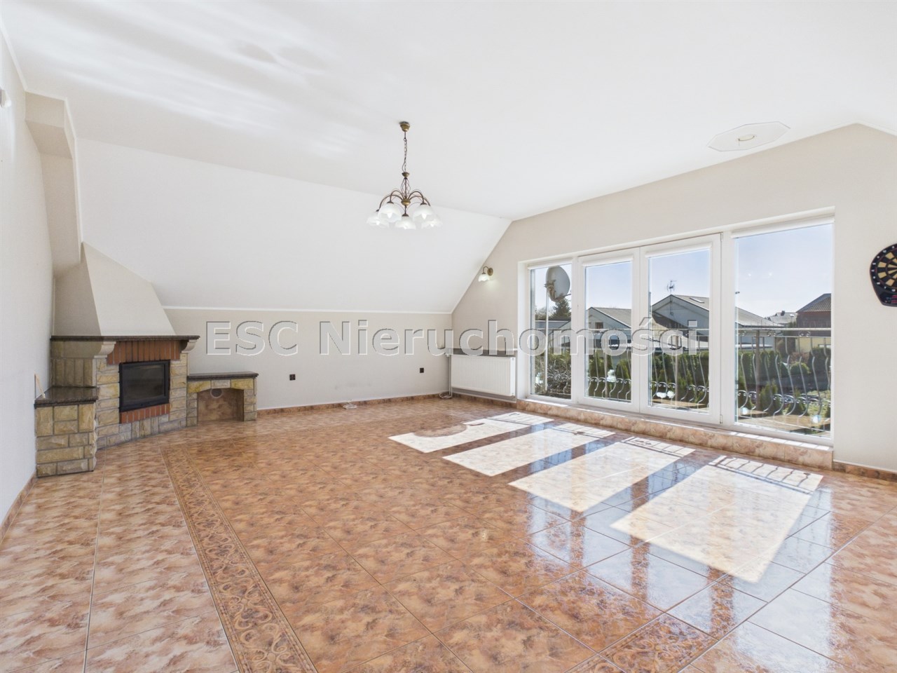 - ogromny salon o pow. 43,4 m² z wielkimi przeszkleniami i balkonem