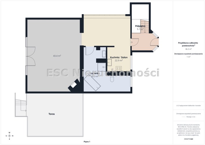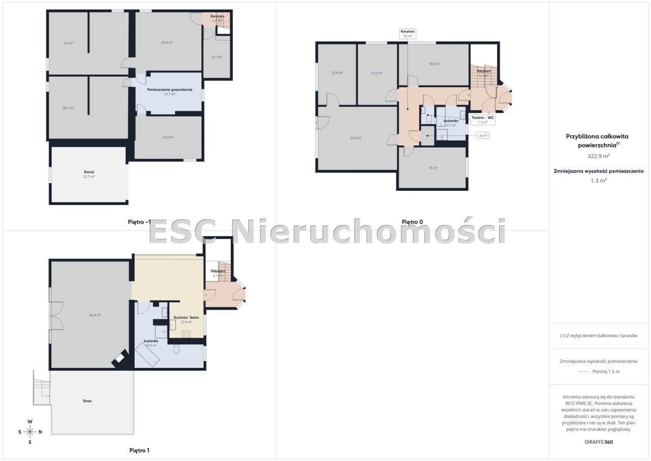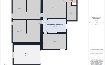 - kuchnia z jadalnią o pow. 22,9 m2,