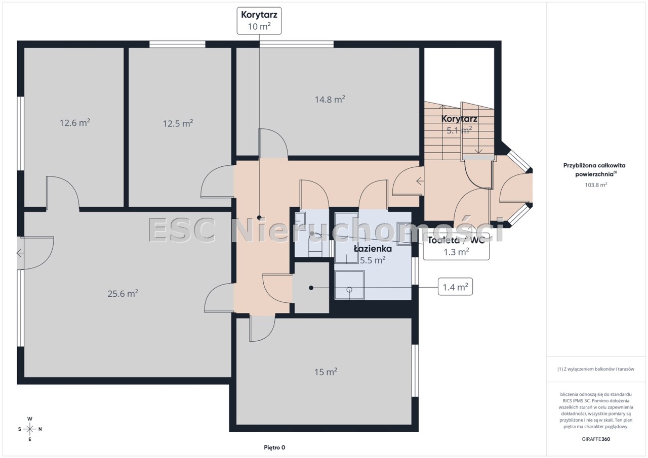 - WC o pow. 1,3 m2