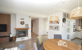 Pomysłowo i subtelnie oddzielona część dzienna od strefy przeznaczonej tylko dla właścicieli (zachowana intymność i prywatność).
