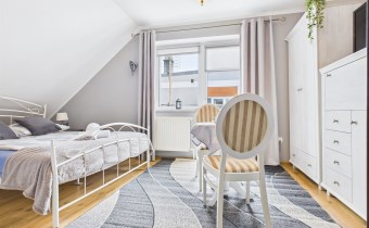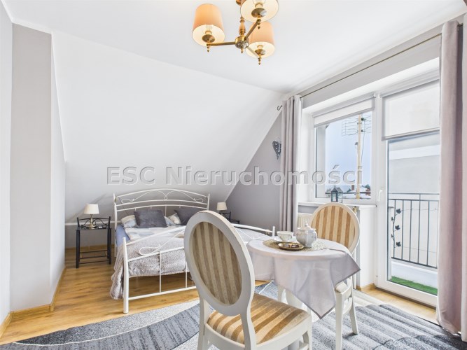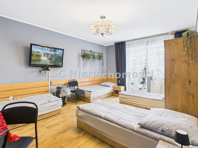 Ogromną wartością tej nieruchomości są dwa dodatkowe pokoje z osobnymi łazienkami, do których wejście znajduje się z zewnątrz. To idealne rozwiązanie dla osób, które: