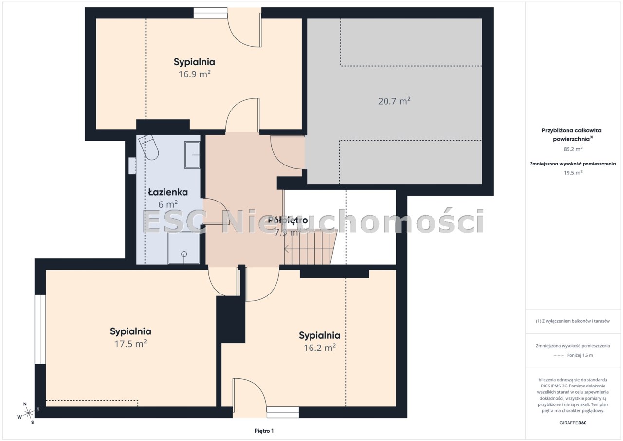 sypialnia o pow. 19,4 m2