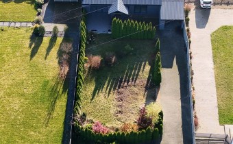 Usytuowanie budynku przy tylnej granicy działki, pozwala wykorzystać pozostałą jej część na zabudowę według własnego projektu i potrzeb.