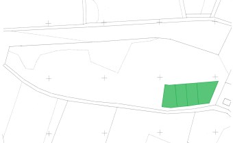 Działka o kształcie prostokąta o powierzchni ok. 800 m2 z dostępem do drogi.