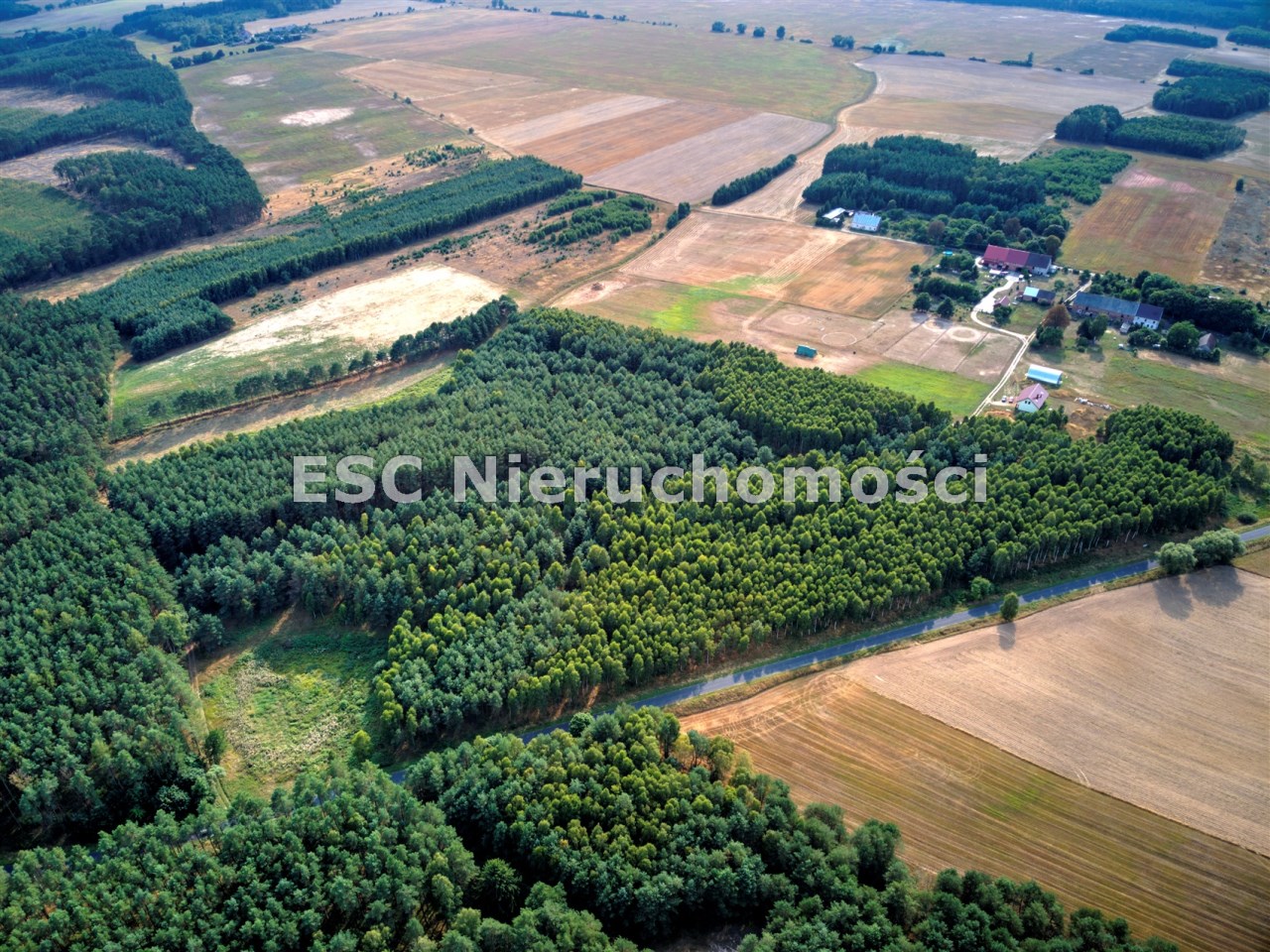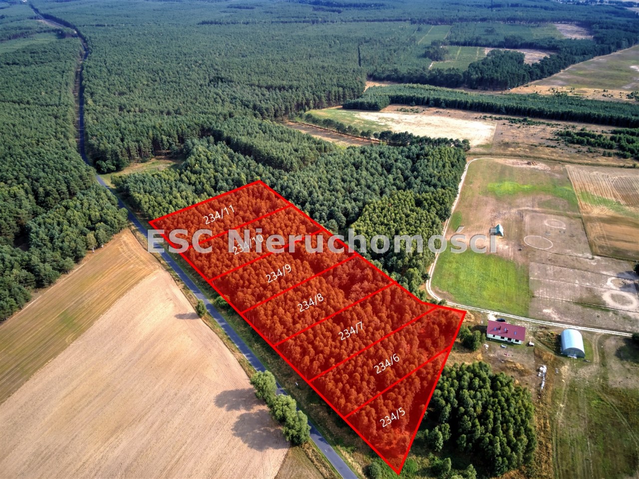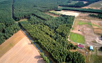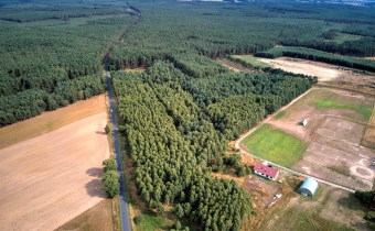 Teren działek jest całkowicie zadrzewiony.