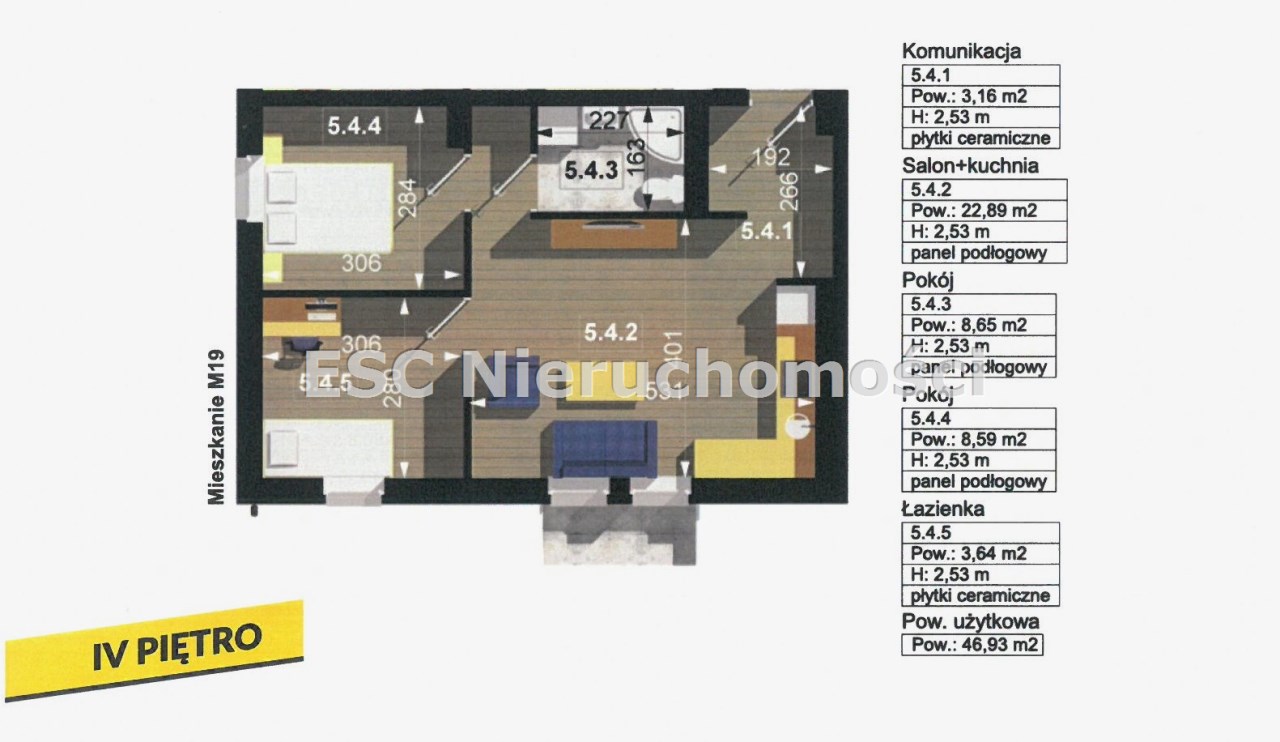 Przedmiotowy lokal ma pow. 46,93m2 i położony jest na IV piętrze. Sprzedawany jest w stanie deweloperskim. Mieszkanie gotowe jest do wykończenia przez nowego nabywcę