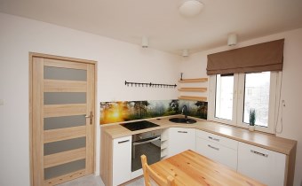1.Pokój-ok 14m2 podłoga w panelach,ściany gipsowane-malowane,okno pcv wyposażone w moskitierę,w cenie kanapa 2.Pokój-ok 10m2 podłoga panele,ściany gipsowane-malowane,okno pcv wyposażone w moskitierę 3.Kuchnia-ok 13,80m2 podłoga gres,ściany gipsowane-malowane+szkło lacobel,okno pcv,pełna zabudowa kuchenna+stół z dwoma krzesłami/lite drewno/,wyposażenie AGD-płyta indukcyjna Elektrolux,piekarnik elektr.Candy,zmywarka Amica,lodówka Amica,piec gazowy,dwufunkcyjny-kondensacyjny Termet/3-letni/