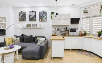 przestronnego salonu z aneksem kuchennym o pow. 26,6 m2, idealnego miejsca do wspólnego spędzania czasu,