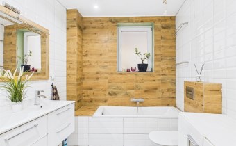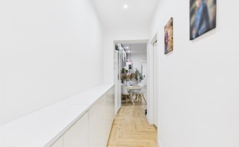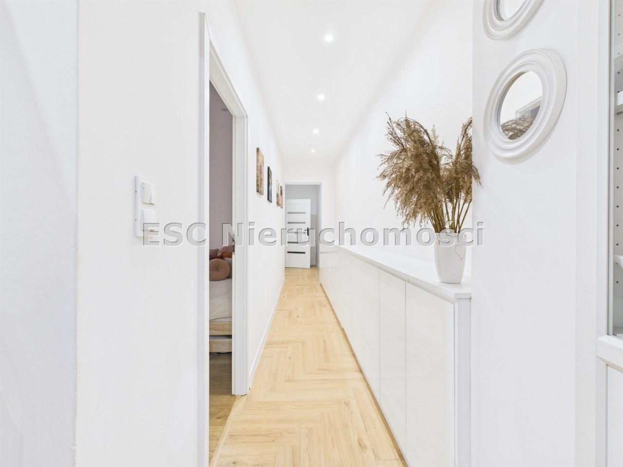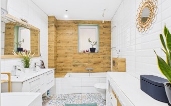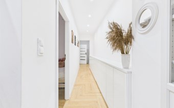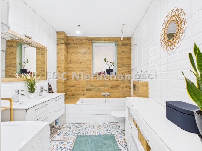 W całym mieszkaniu zastosowano ogrzewanie podłogowe, co zapewnia komfort cieplny przez cały rok.