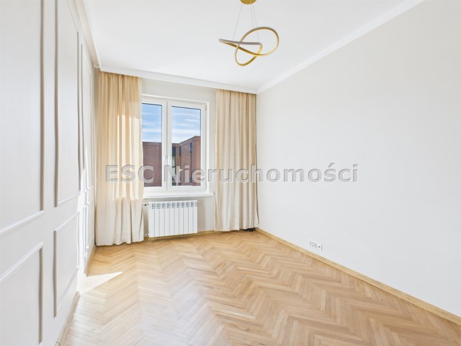 Sypialnia o powierzchni 7,9 m2, parkiet drewniany (buk) cyklinowany i lakierowany, z możliwością aranżacji pod łóżko i szafę;