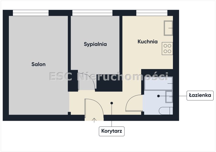 Funkcjonalny układ - oddzielna kuchnia i wyraźnie wydzielona strefa dzienna;