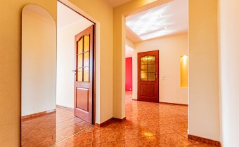 Podłogi: pokoje - terakota, wykładzina PCV; kuchnia, łazienka i przedpokój - terakota.