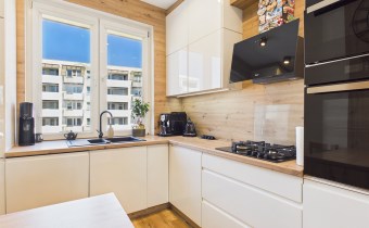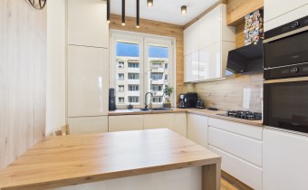 Lokal przeszedł częściowy remont – nowoczesna łazienka oraz funkcjonalna kuchnia wykonana na wymiar przez stolarza, w pełni wyposażona w sprzęt AGD. W mieszkaniu na podłodze panele oraz terakota, okna PCV oraz gładzone i malowane ściany.