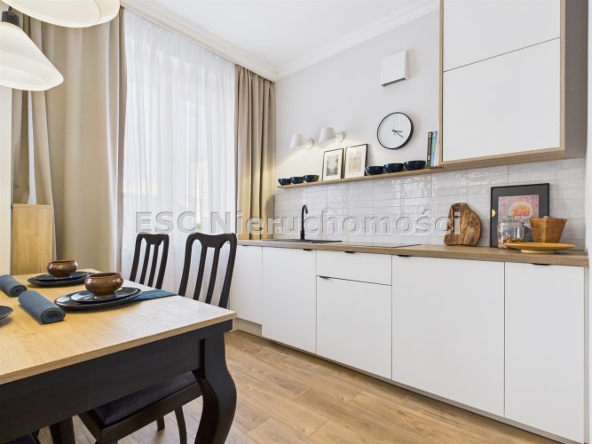 Mieszkanie po generalnym remoncie – wymienione instalacje elektryczne i wodno-kanalizacyjne, nowe panele podłogowe wysokiej klasy ścieralności, nowe drzwi wewnętrzne i zewnętrzne. Łazienka wykończona nowymi płytkami oraz modną armaturą. Zabudowa meblowa została wykonana na wymiar, co zapewnia maksymalną funkcjonalność i estetykę wnętrza. Wysokie sufity optycznie powiększają przestrzeń, nadając mieszkaniu poczucie przestronności, a dekoracyjna sztukateria dodaje wnętrzu elegancji i klasycznego charakteru. Lokal bez instalacji gazowej, co wpływa na bezpieczeństwo i ekonomię użytkowania.