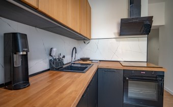 Mieszkanie sprzedawane jest z zabudową kuchenną widoczną na zdjęciach. Kuchnia wyposażona w sprzęty AGD tj. piekarnik, płyta indukcyjna, lodówka, zmywarka, okap.