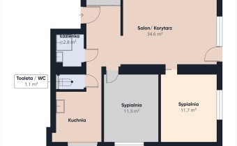 Powierzchnia pokoi 19,1; 10,6; 11,2 m2