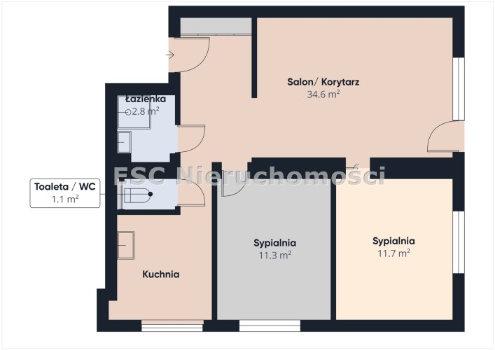 3 pokoje 60,29 m2 8 300,00 zł/m2
