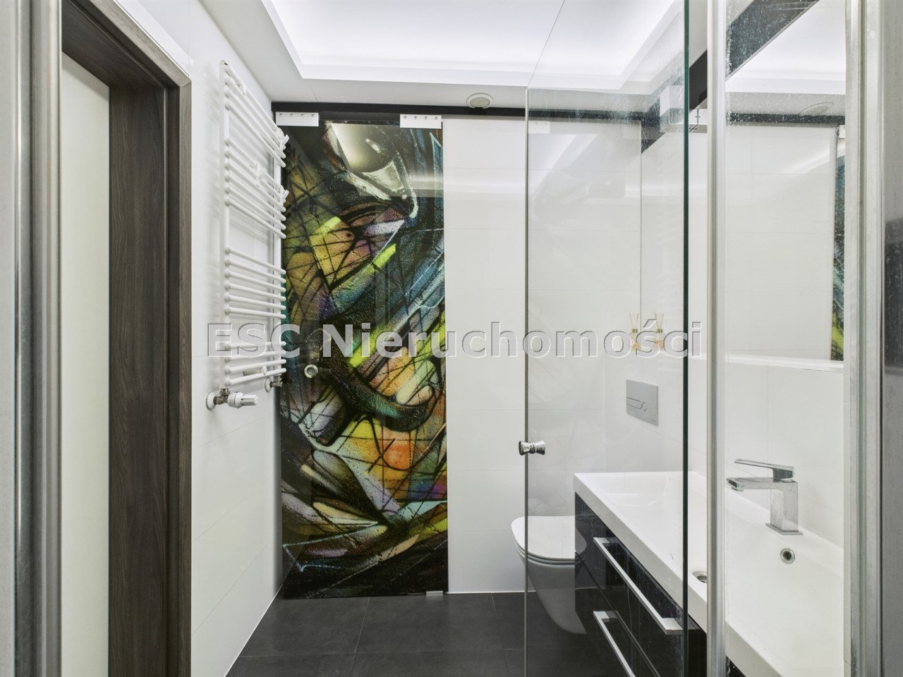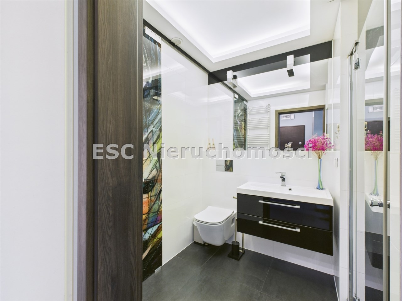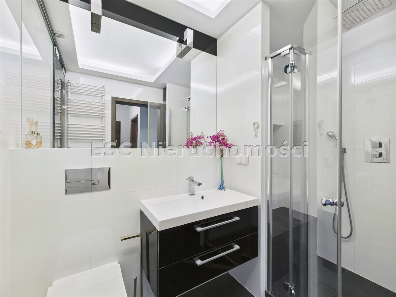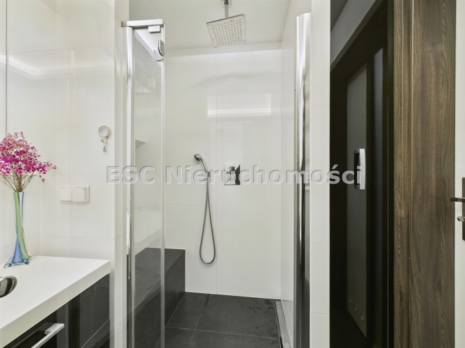 • łazienka (4,3 m²)  z elegancką zabudową i miejscem do przechowywania