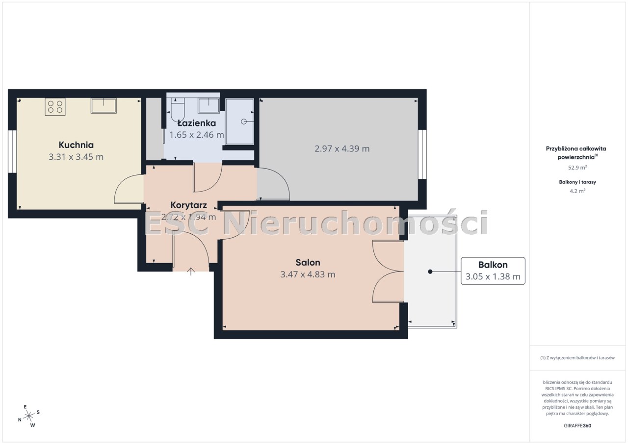Powierzchnia użytkowa 52,59 m²