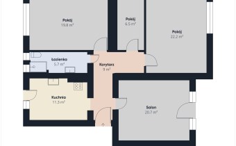 - salon (20 m2) z wyjściem na loggię (pow. 6,5 m2),