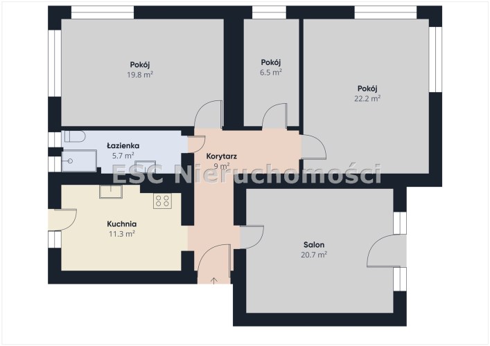 - kuchnia (11 m2) z wyjściem na drugi balkon od strony podwórza,