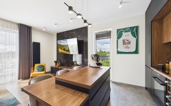 Mieszkanie jest w pełni wyposażone – gotowe do zamieszkania od zaraz. W kuchni znajdziesz sprzęt AGD wysokiej klasy: zmywarkę, lodówkę, piekarnik, płytę grzewczą.