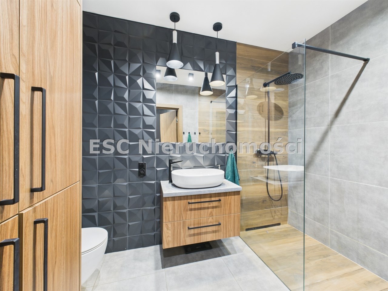 - nowoczesnej łazienki z dużym prysznicem,