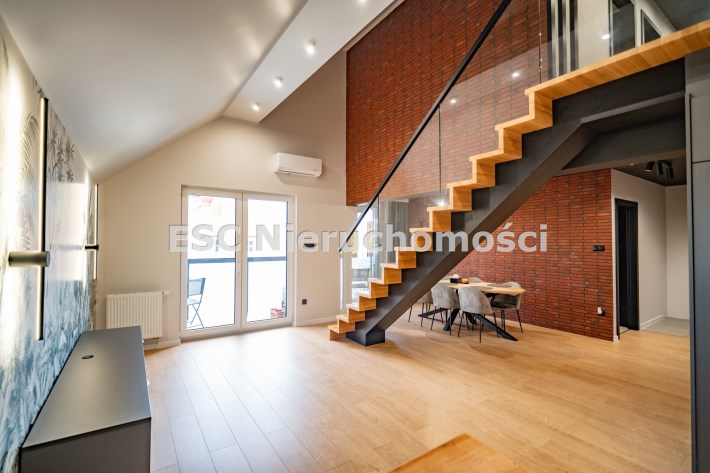 To mieszkanie to świetna alternatywa dla domu – łączy w sobie zalety dużej przestrzeni, nowoczesnej architektury i wygody mieszkania w mieście.