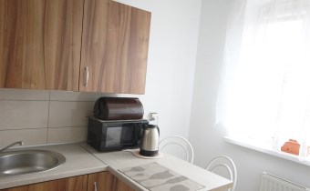 • Kuchnia (3,4 m²) – osobna, w pełni umeblowana i wyposażona w sprzęt AGD.