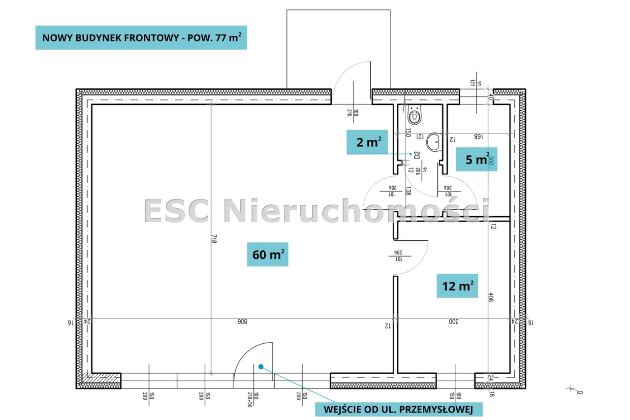 2. Nowy budynek frontowy o funkcji usługowo-handlowej – pow. 77 m²