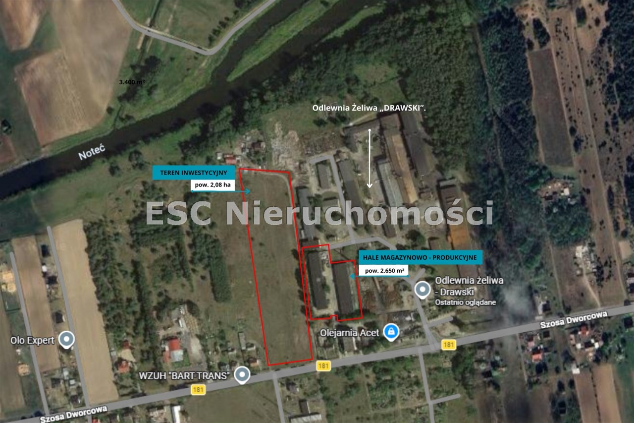 Na sprzedaż funkcjonalny kompleks nieruchomości produkcyjno-magazynowych z zapleczem socjalnym oraz dużym terenem inwestycyjnym o przeznaczeniu usługowym, położony w Drawskim Młynie przy ul. Szosa Dworcowa (powiat czarnkowsko-trzcianecki, woj. Wielkopolskie), w bezpośrednim sąsiedztwie Odlewni Żeliwa „DRAWSKI”.